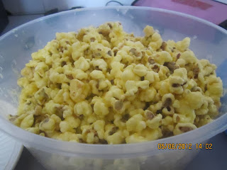 masak hingga cair dan likat semua bahan d atas masukkan pop corn.. kacau sebati